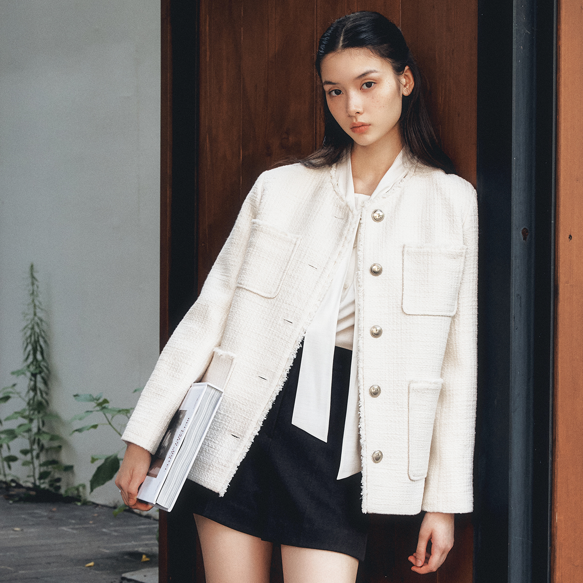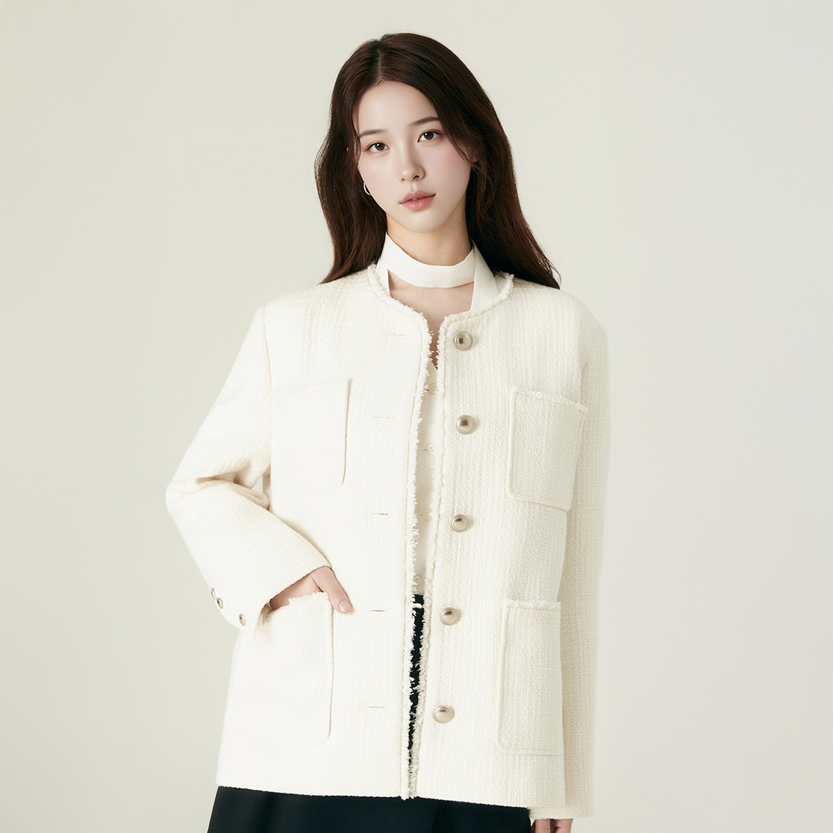 - 디자인, 클래식하면서도 세련된 트위드 소재는 어떤 룩에도 잘 어우러집니다.